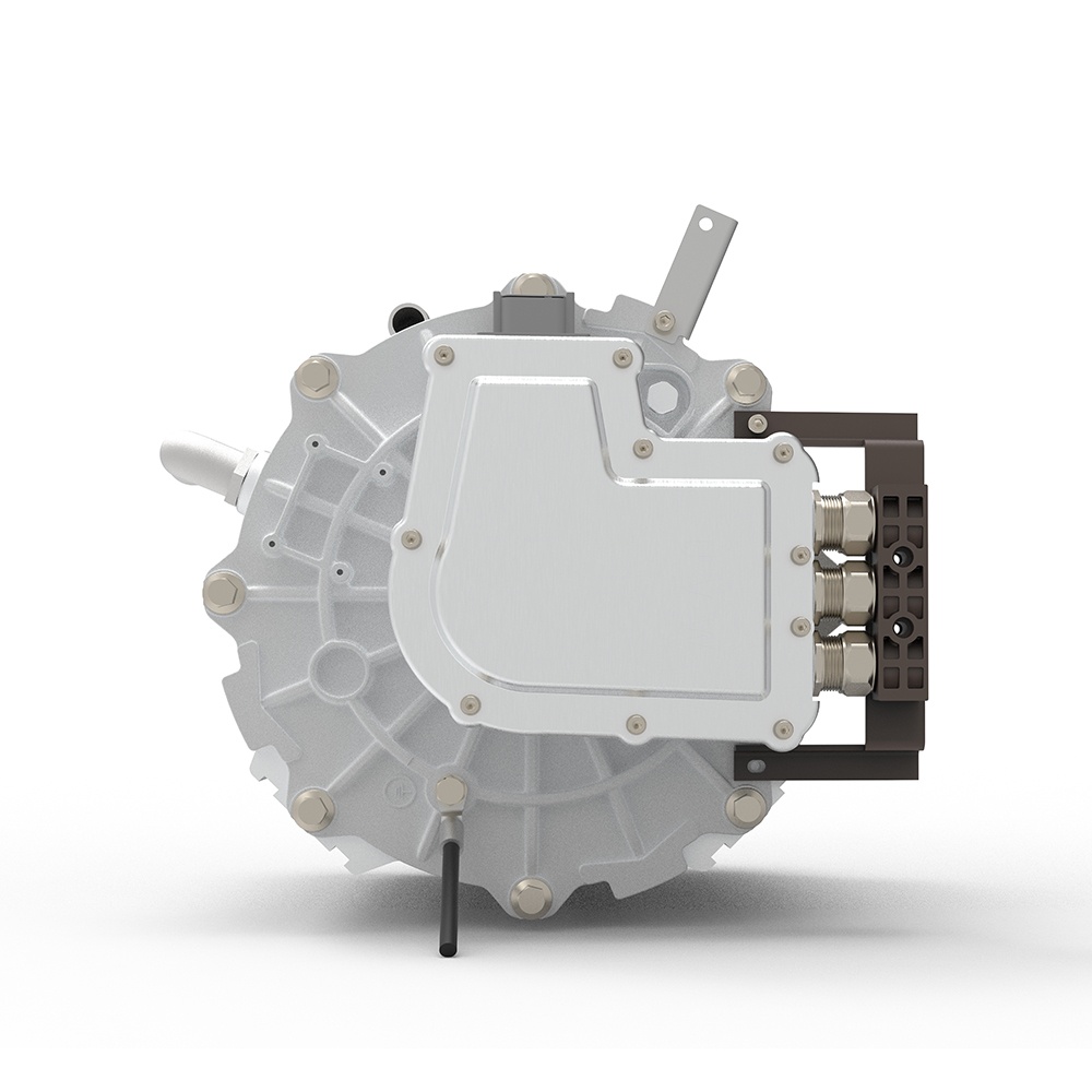| 額定功率(KW):50 額定轉速(rpm):1200 額定扭矩(N.m):400 額定電壓AC(V):380 額定直流母線電壓DC(V):540 全功率運行最低母線電壓(V):400 最高效區(%):≥94.5% 高效區(%):≥90.0% 絕緣等級:H 防護等級:IP68 工作噪聲(dB):≤78 水嘴外徑尺寸(mm):25 峰值功率(KW):100 峰值轉速(rpm):3000 峰值扭矩(N.m):1000 額定電流(Arms):150 最大相電流(Arms):400 最高轉速對應空載反電動勢(V):383 峰值功率持續運行時間(s):60 峰值扭矩持續運行時間(s):30 電機外形尺寸(mm):φ326*363 重量(kg):≤105 冷卻水入口溫度(℃):≤65 冷卻水流量(L/min):≥15 工作環境溫度(℃):-40/+85 |